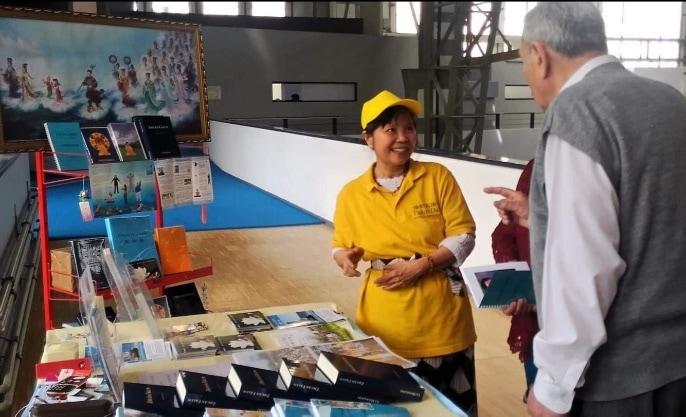 A Fálun Dáfá pultja a galérián kapott helyet, amikor kipakoltunk éppen azon gondolkodtunk, hogy mennyire vagyunk jó helyen, könnyen ránk találnak-e majd a látogatók. Ekkor érkezett egy nagyon kedves érdeklődő, aki megnyugtatott minket, hogy nagyon jó helyen vagyunk, amint felér valaki a lépcsőn és kinéz a korlát felett, éppen a Fálun Dáfá pultját látja meg, és ahogy ő mondta: „az Őszinteség, Jószívűség, Tolerancia mindenkit érdekel”. Azután a gyakorlatról kérdezgetett minket, fényképeket készített, és eltette az online elérhetőségeinket. Azt mondta, amint leülepszik benne ez a sok új információ, mindenképpen utána néz ennek a gyakorlatnak, mert nagyon tetszett neki, amit hallott.
