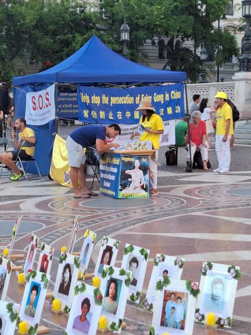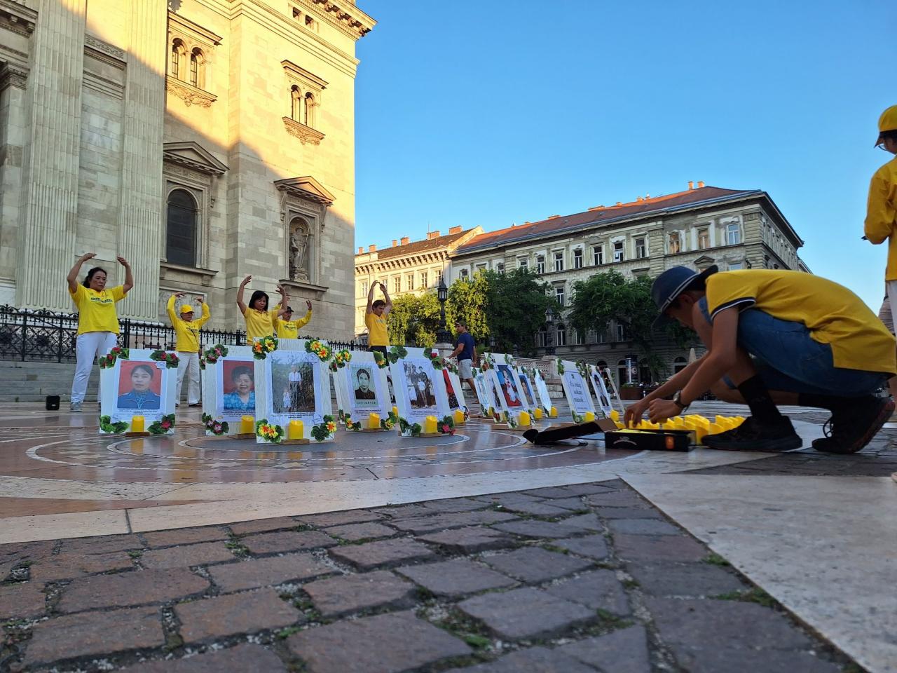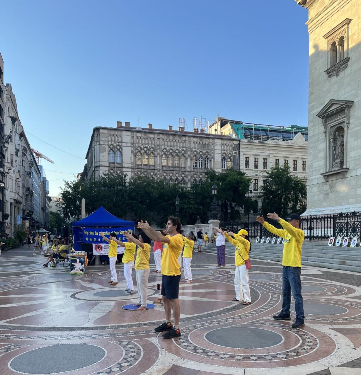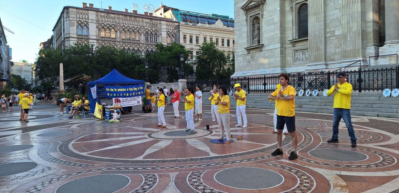A Fálun Dáfá gyakorlók információs napot és gyertyafényes megemlékezést tartottak Budapesten, a Szent István téren 2023. július 15-én, hogy felszólítsanak a Fálun Dáfá üldözésének befejezésére, melyet a Kínai Kommunista Párt indított el 24 évvel ezelőtt. A gyakorlók a Szent István Bazilika lépcsője előtt állították fel az információs sátrukat, ahol mikrofonon és személyesen tájékoztatták az érdeklődőket a meditációs gyakorlatról és az üldözésről.