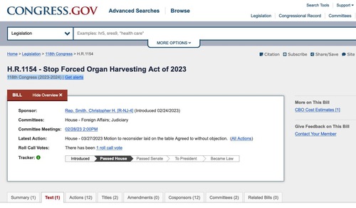 H.R.1154 – A 2023-as erőszakos szerveltávolítás megállításáról szóló törvényt március 27-én fogadták el