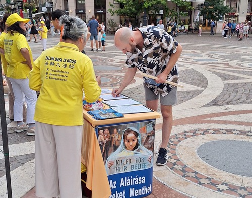 Három fiatal diák írta alá a petíciót, miután beszélgettek egy gyakorlóval a Fálun Dáfáról, és megismerték az üldözés tényeit és az erőszakos szerveltávolításokkal kapcsolatos információkat.