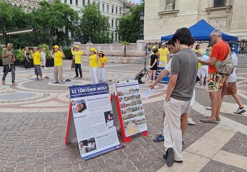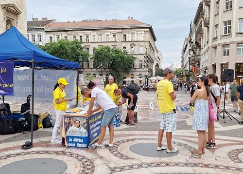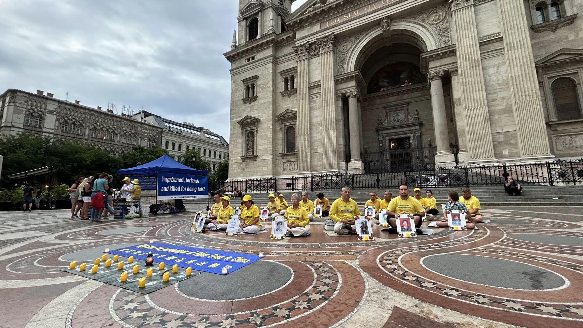 A gyakorlók 2024. július 20-án rendezvényt tartottak a Szent István Bazilika előtt, hogy felhívják a figyelmet a Fálun Dáfá 25 éve tartó üldözésére.