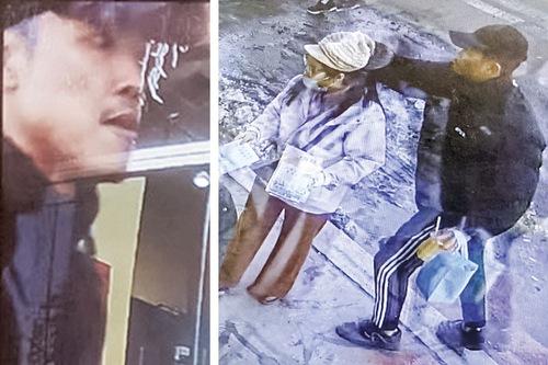 A bal oldali képen a támadó közeli fotója látható, amelyet biztonsági kamera rögzített menekülés közben. A jobb oldali kép azt a pillanatot mutatja, amikor az illető megtámadta Dong asszonyt.